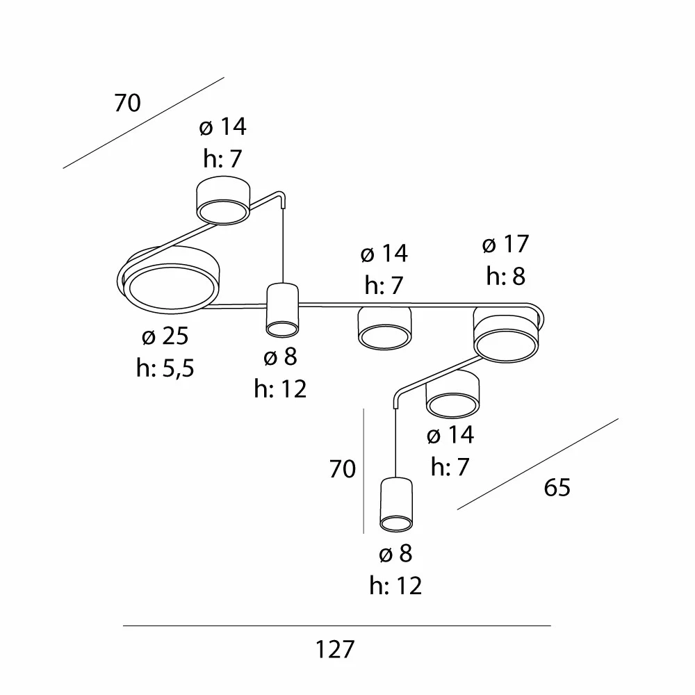 L: 127 cm, W: 65 cm, H: 70 cm