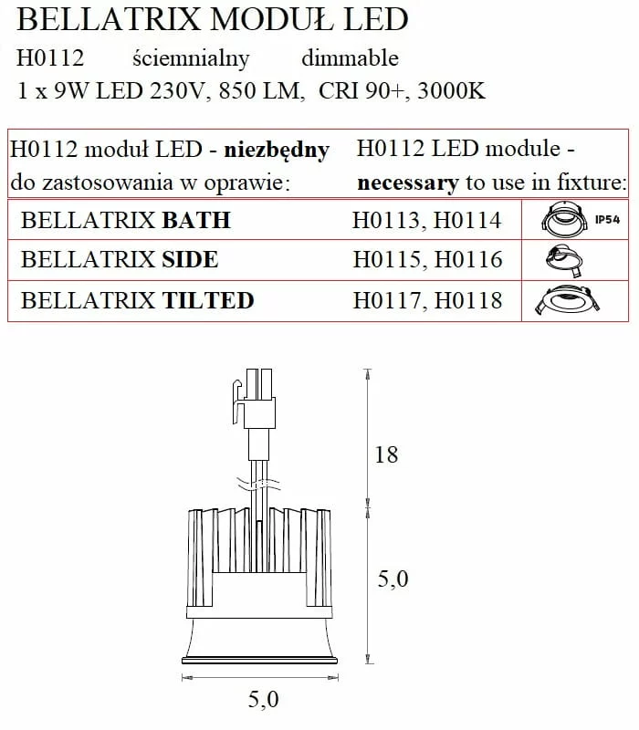 Niezbędny do zastosowania w oprawie: H0113, H0114, H0115, H0116, H0117