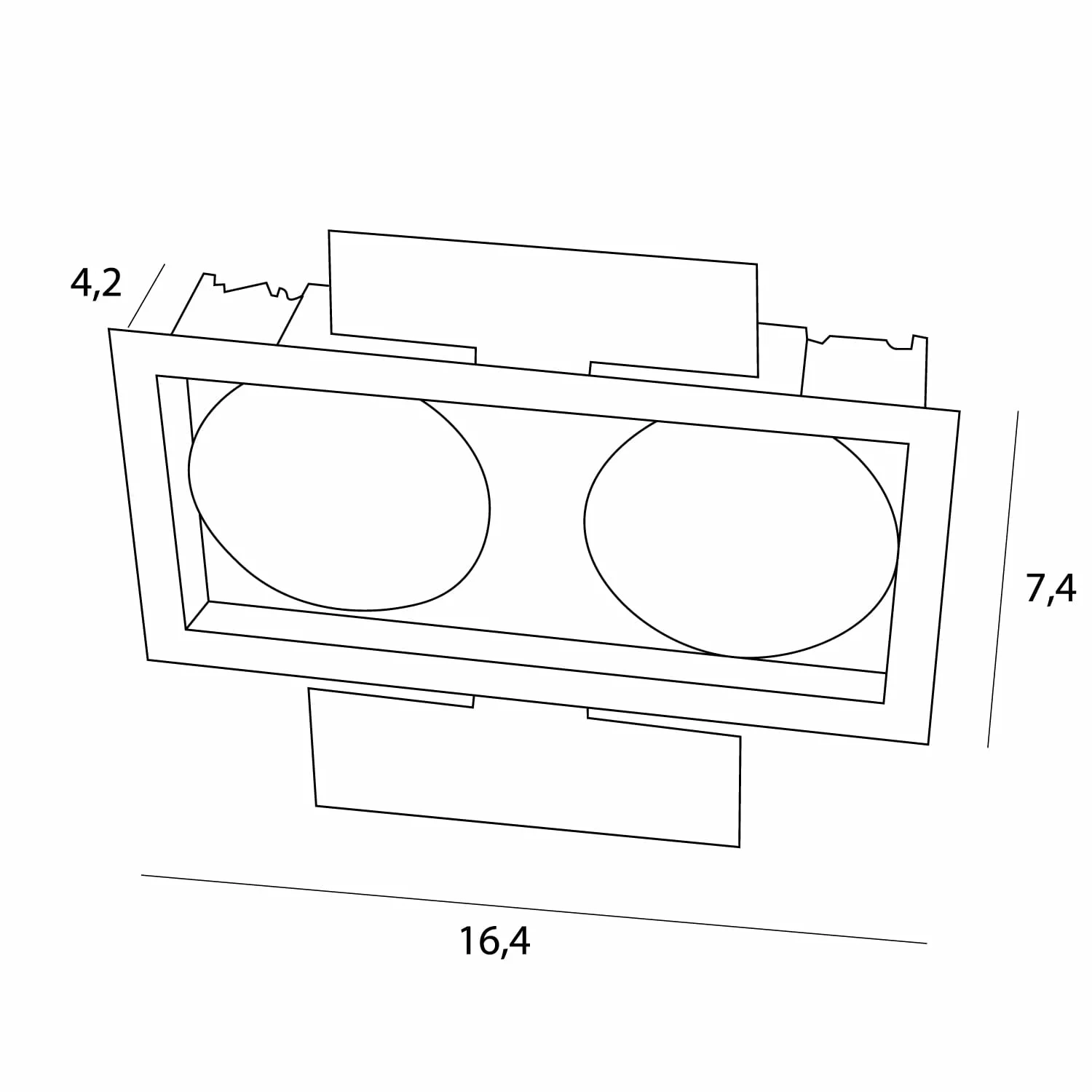 L: 16.4 cm, W: 7.4 cm, H: 9.1 cm